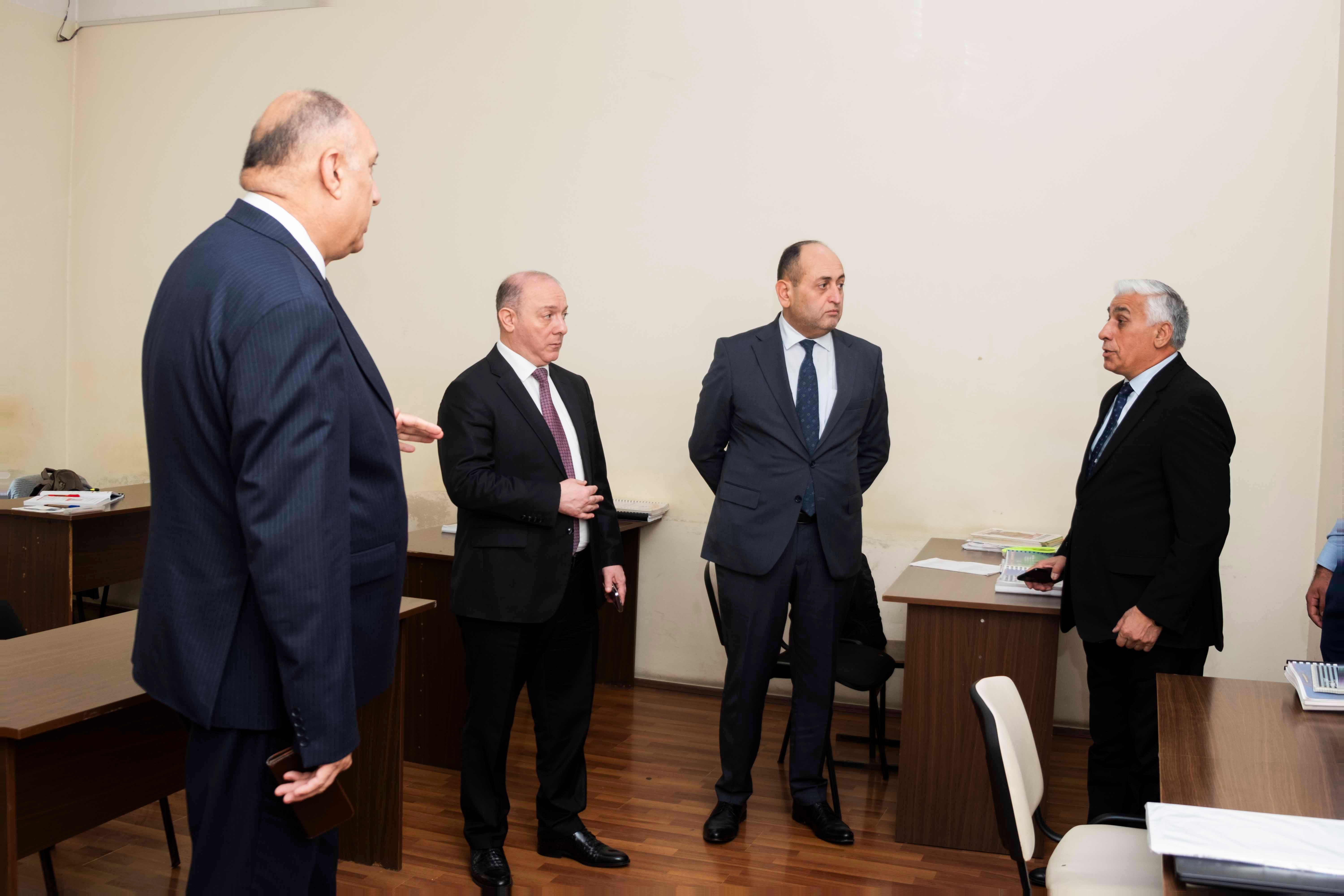 Yoxlamada universitetinTədris işləri üzrə prorektoru, professor Anar Ağayev, Həmkarlar İttifaqı Komitəsinin sədri dosent Cahangir Qasımov, Tərbiyə işləri üzrə prorektor, dosent Mahir Səfərov, Təsərrüfat işləri üzrə prorektor İlqar Mehrabov və təsərrüfat şöbəsinin nümayəndələri və digər aidiyyəti şəxslər iştirak ediblər.