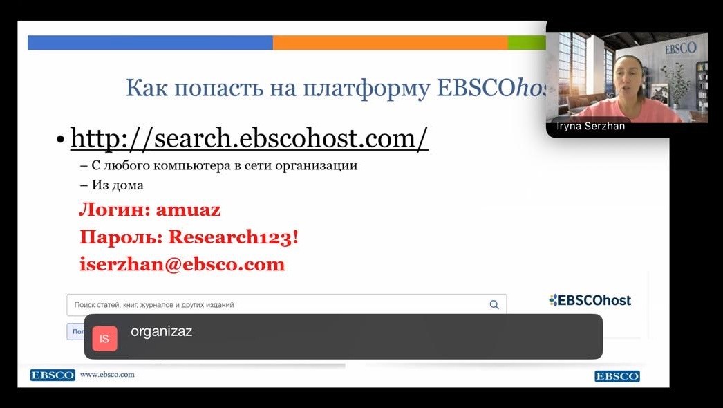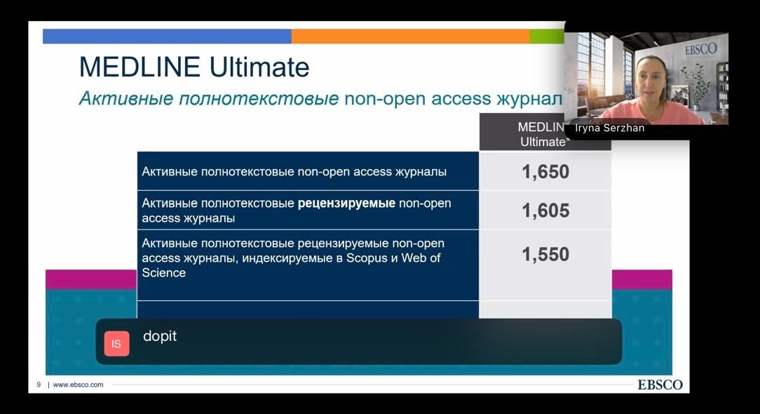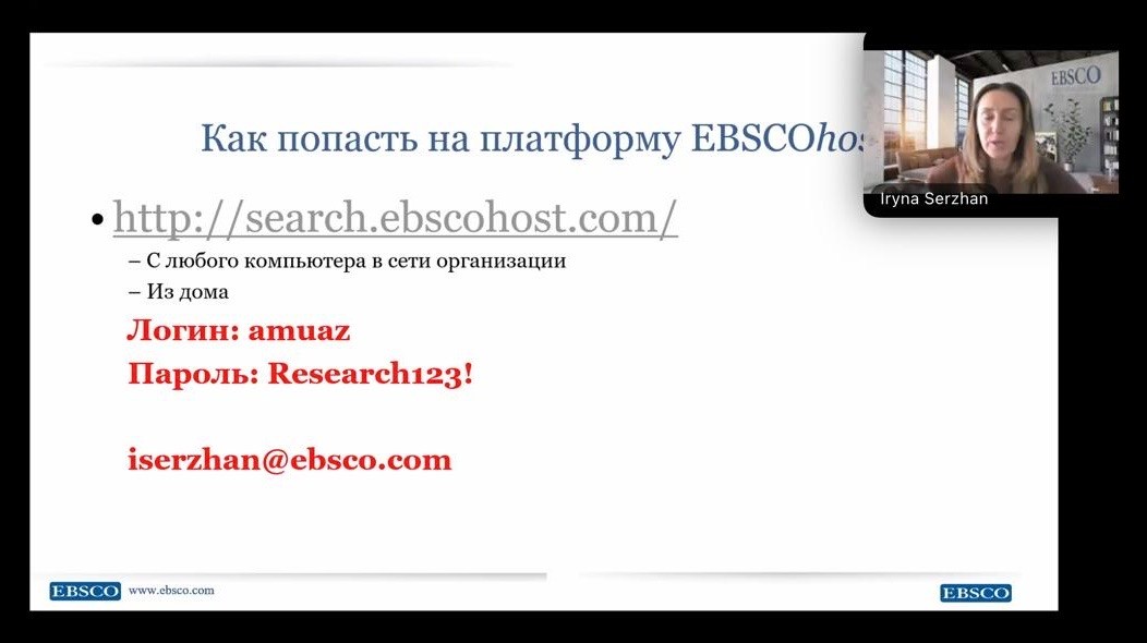 Azərbaycan Tibb Universitetinin (ATU) Elmi tədqiqatların idarə olunması departamentinin təşəbbüsü ilə EBSCO şirkəti tərəfindən universitetin professor-müəllim heyəti üçün bir sıra maarifləndirici vebinarlar keçirilib. Tədbirlər 15, 22 və 29 oktyabr tarixlərində onlayn formatda baş tutub.