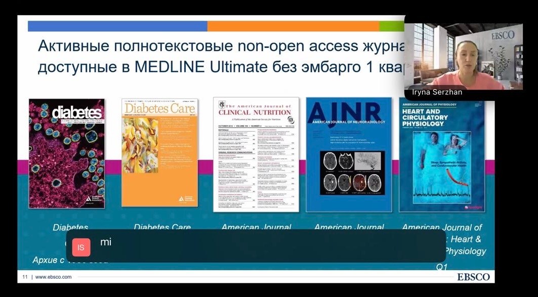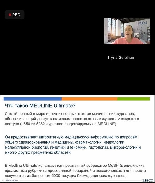 İkinci vebinar “Azərbaycan Tibb Universitetində mövcud olan Medline Ultimate elektron jurnallar kolleksiyasında tibb aid elmi məlumatların peşəkar axtarışı” mövzusuna həsr olunub. İştirakçılara beynəlxalq jurnallarda peşəkar axtarışın yolları ətraflı izah olunub.