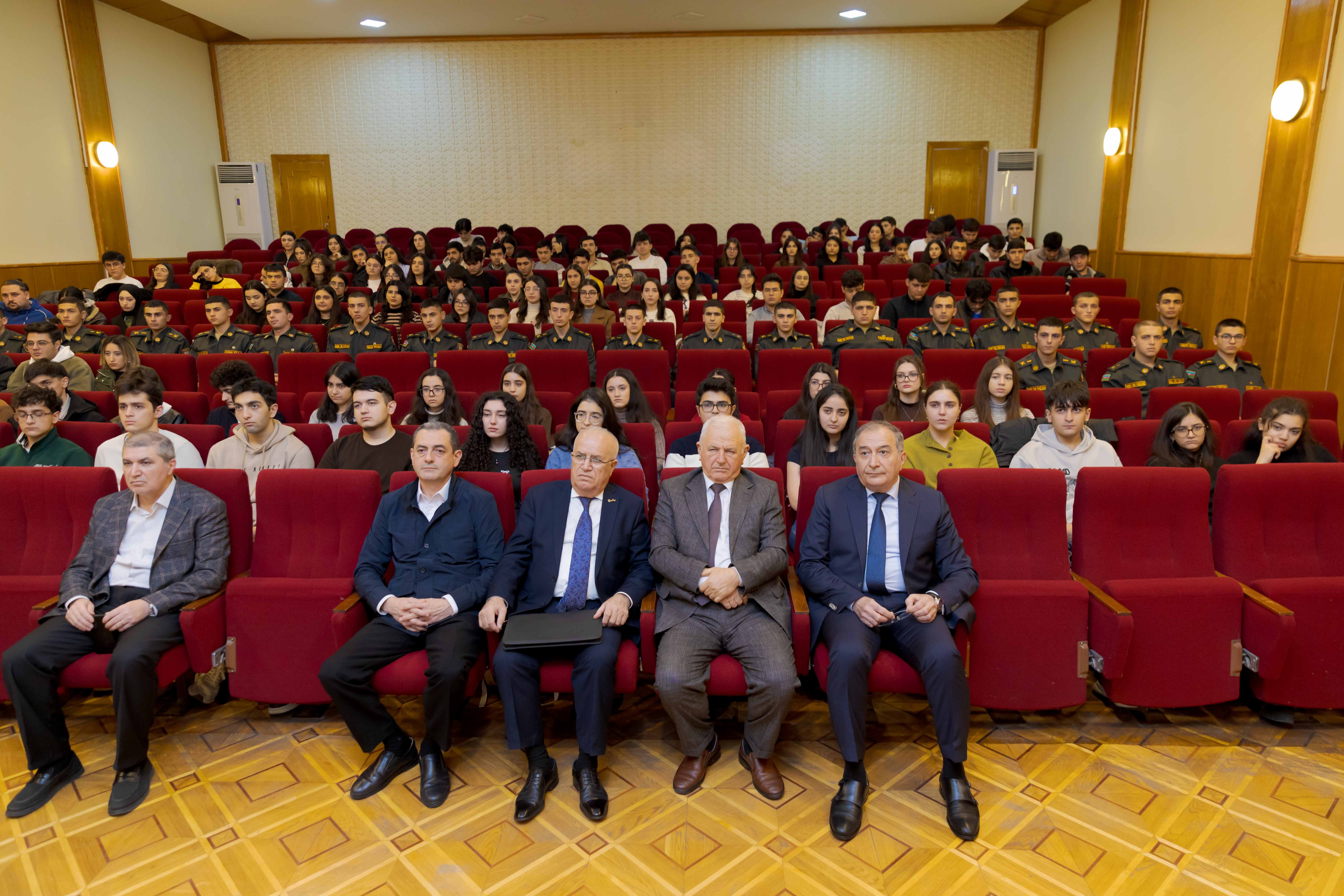 İctimai fənlər kafedrasının müdiri, professor Qoşqar Əliyev isə Heydər Əliyevin Azərbaycan dövlətçiliyinin formalaşması və möhkəmləndirilməsi istiqamətində gördüyü böyük işlərdən bəhs edib: “Ulu Öndər deyirdi ki, mən həyatda üç şeyə arxalanmışam: birincisi Yaradanıma, ikincisi zəhmətimə, üçüncüsü xalqıma. Öz xalqının xilaskarına çevrilən Heydər Əliyevin ən böyük əsəri müstəqil, suveren Azərbaycan dövlətidir. Fəxrlə deyə bilərik ki, Ulu Öndər həmişə xalqına və dövlətinə sadiq olub. Onun əsas məqsədi Azərbaycanın təhlükəsizliyini təmin etmək, dövlətçiliyi möhkəmləndirmək və ölkəmizin beynəlxalq aləmdə nüfuzunu artırmaq idi. Bu gün biz onun qoyduğu prinsipləri davam etdiririk”.