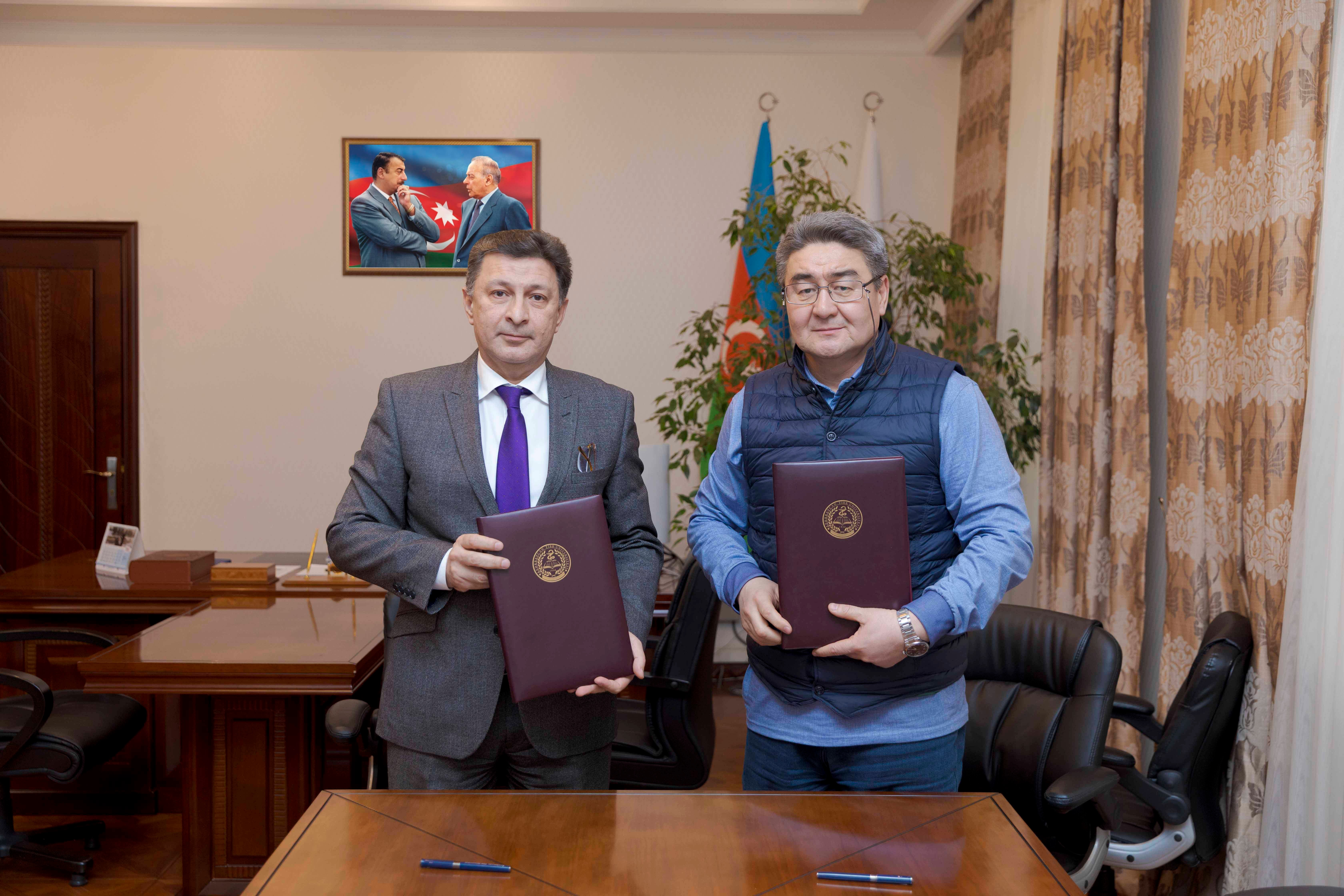 Görüşün sonunda ATU-nun rektoru, professor Gəray Gəraybəyli və Mərkəzin direktoru, professor Yertay Otarov arasında əməkdaşlıq haqqında memorandum imzalanıb.