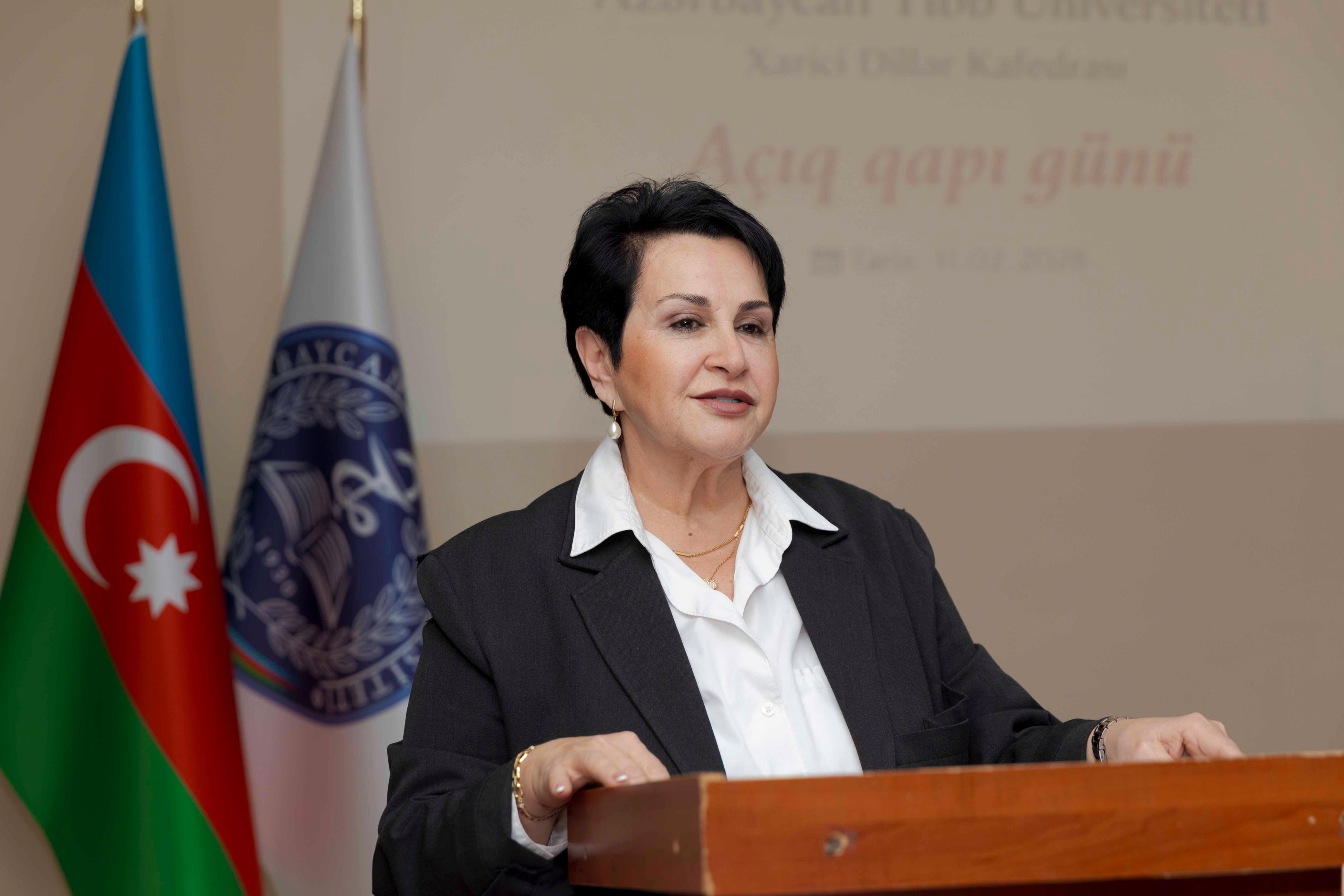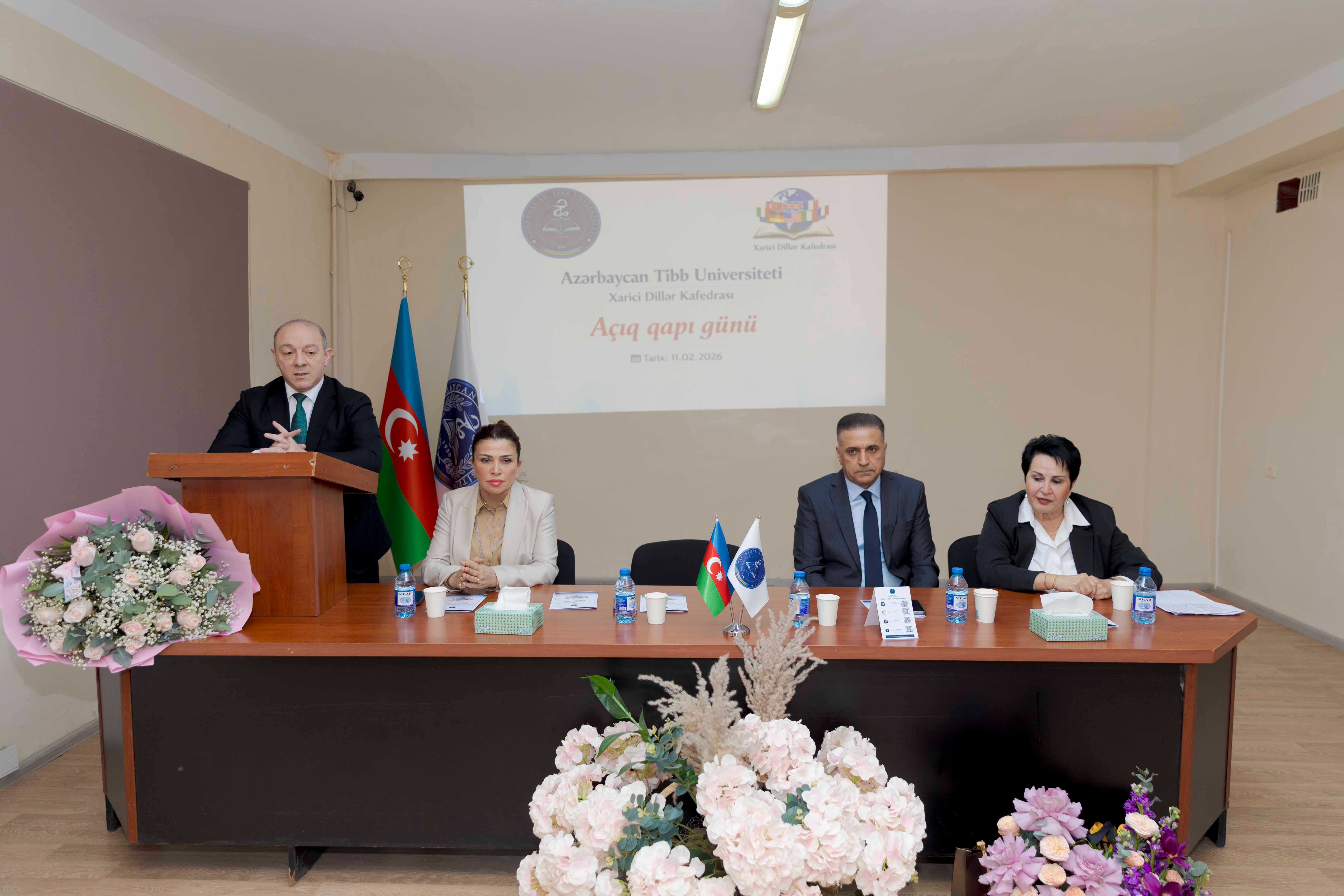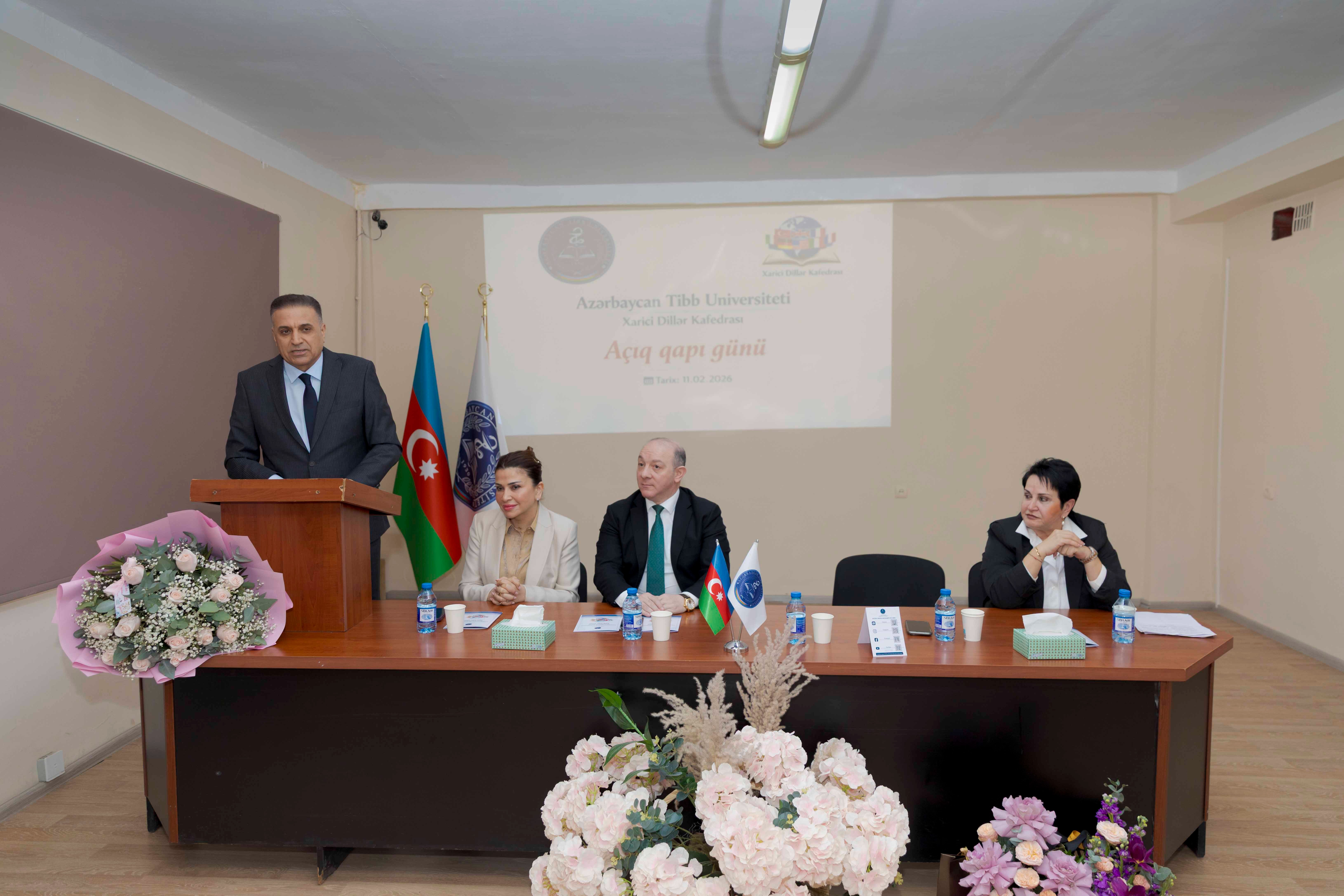 Tədris işləri üzrə prorektor, professor Anar Ağayev çıxışında müasir dövrdə xarici dil biliyinin artıq əlavə üstünlük deyil, peşəkar zərurətə çevrildiyini vurğulayıb. O qeyd edib ki, xüsusilə tibb sahəsində beynəlxalq elmi mənbələrə çıxış, akademik əməkdaşlıq və qlobal ünsiyyət xarici dil bacarıqları olmadan mümkün deyil. Prorektor bildirib ki, Azərbaycan Tibb Universiteti rəqabətqabiliyyətli və beynəlxalq standartlara uyğun kadrların hazırlanmasını prioritet hesab edir və bu prosesdə Xarici dillər kafedrasının rolu xüsusi əhəmiyyət daşıyır.
