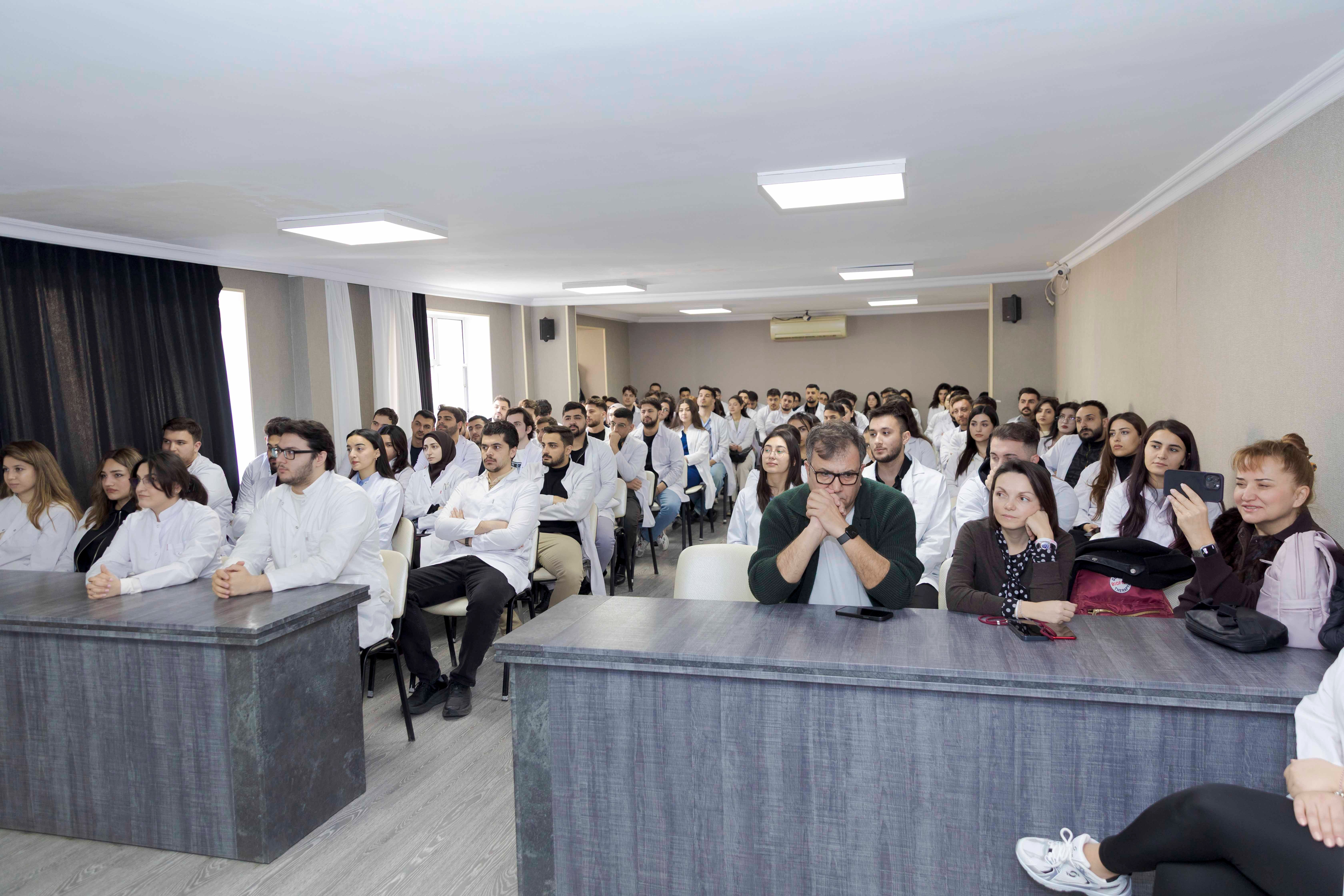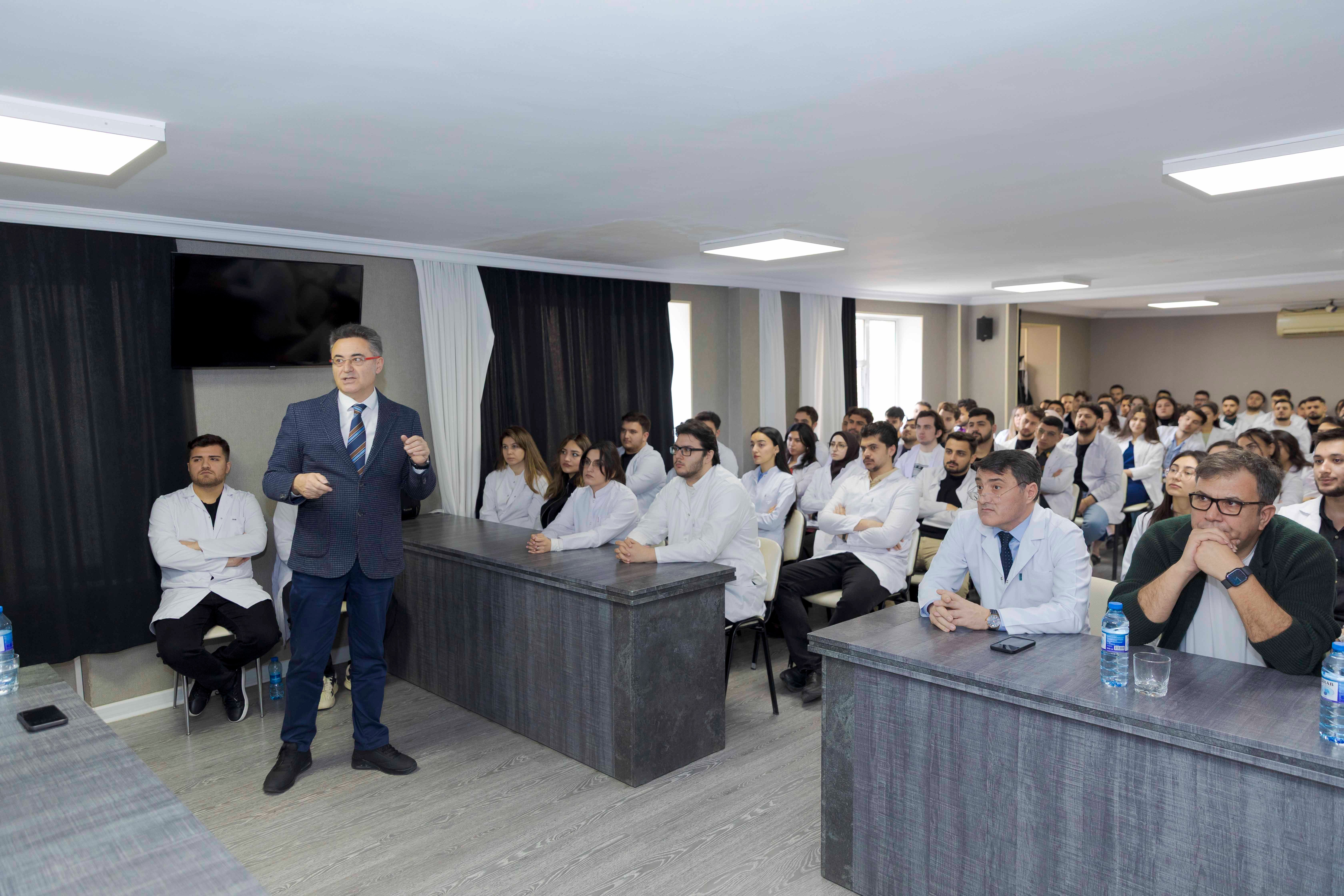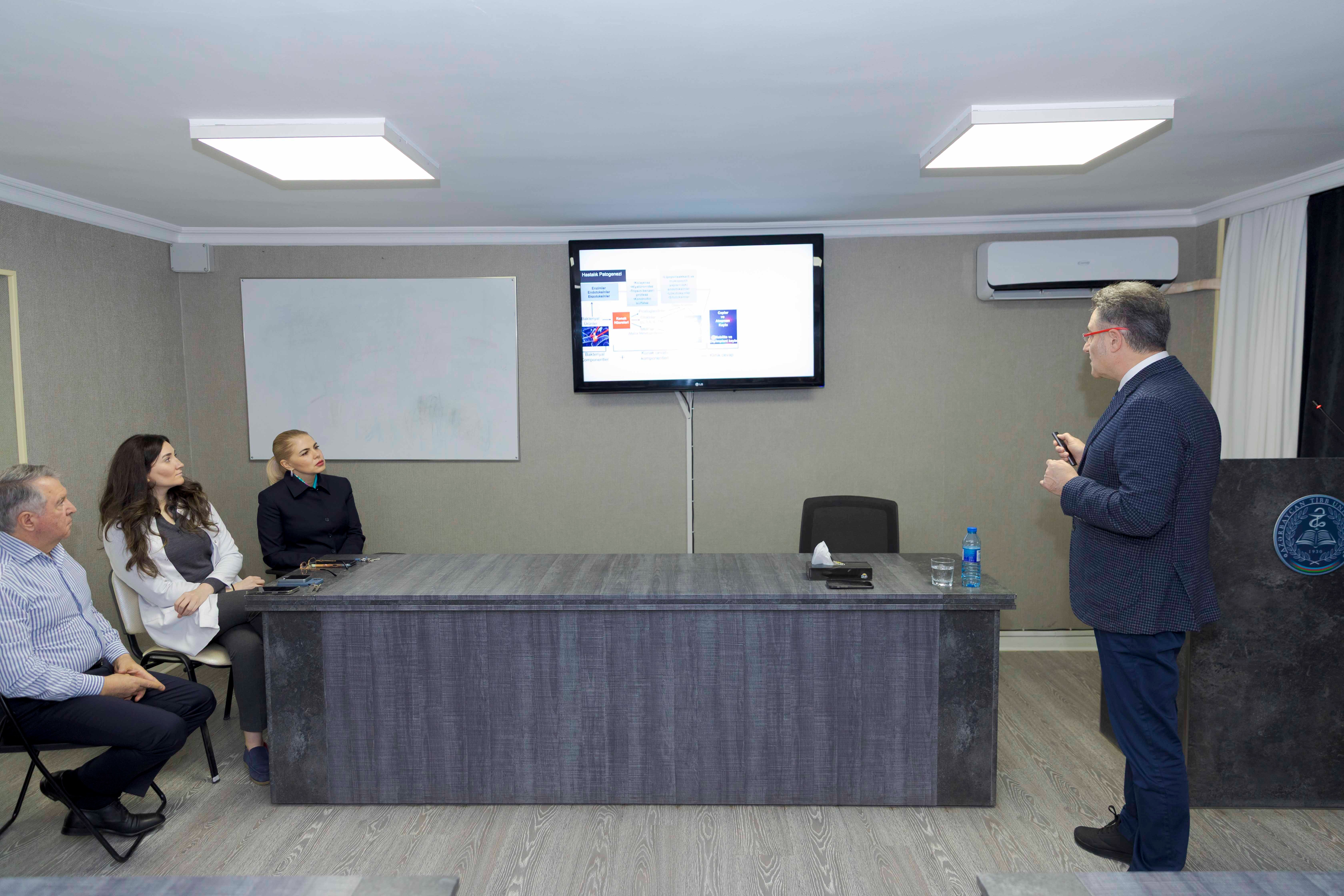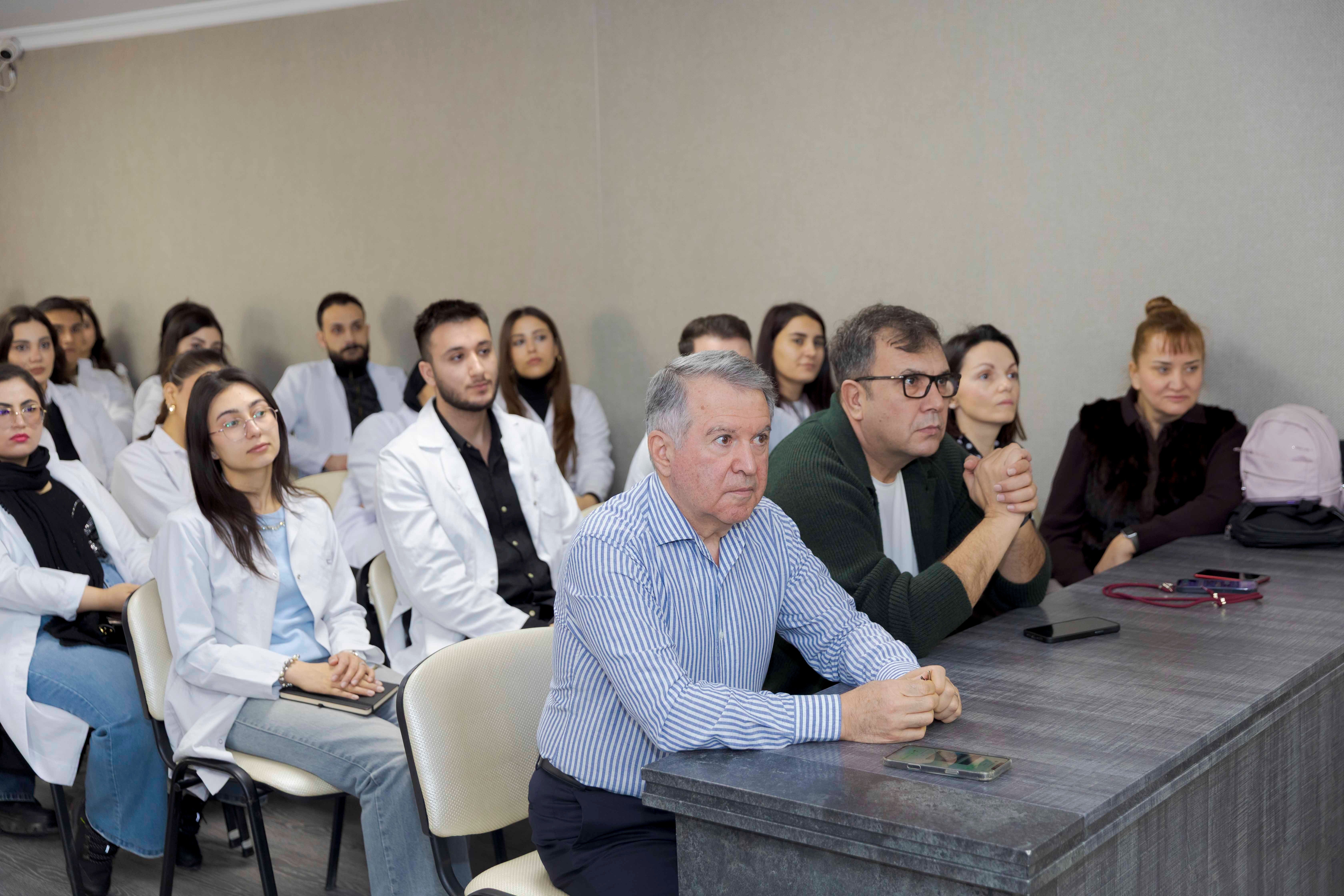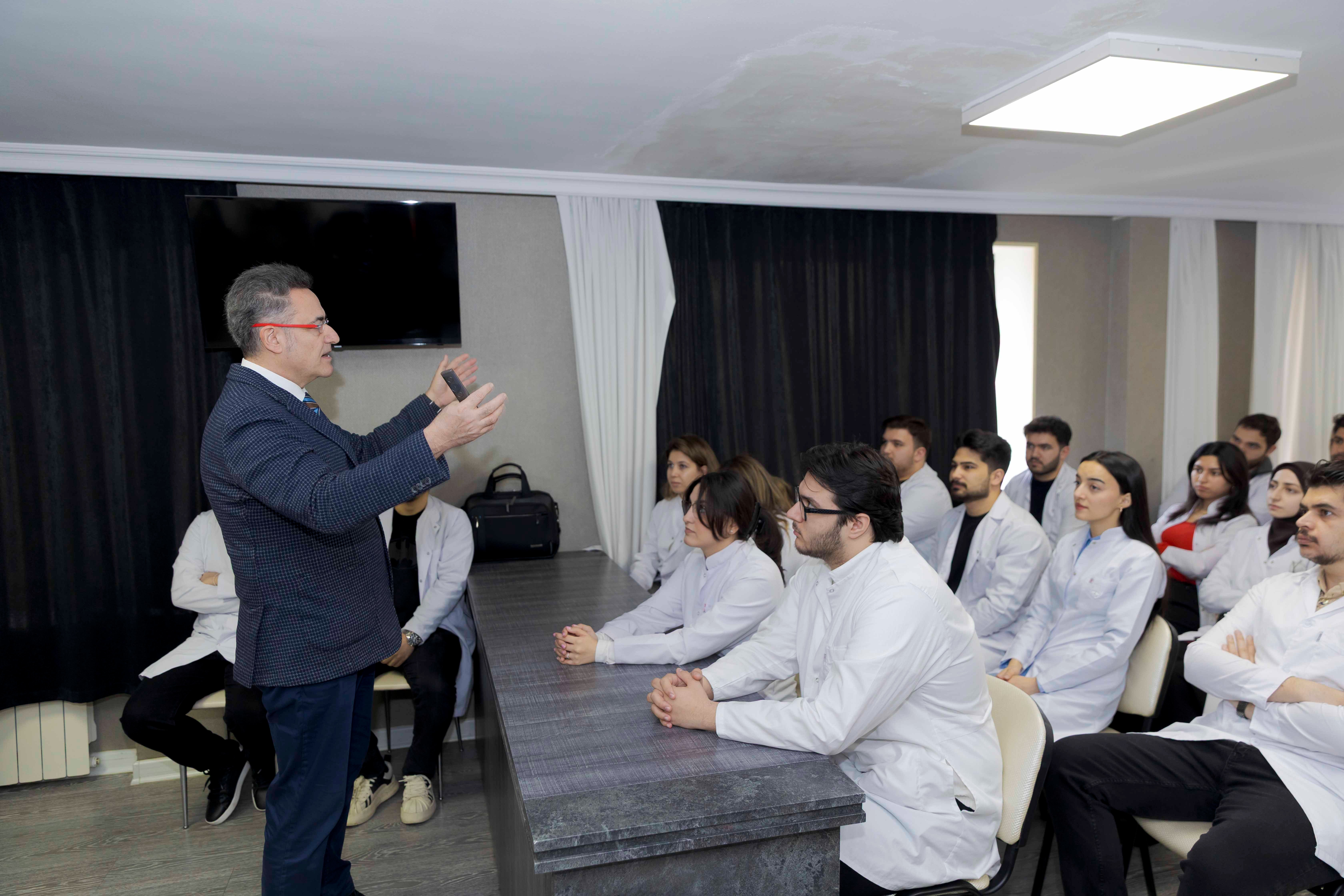Professor Bülent Kurtiş periodontologiya və implantologiya sahəsində ixtisaslaşmış mütəxəssisdir və bu istiqamətdə uzun illər elmi-praktik fəaliyyət göstərir. Görüş çərçivəsində o, tələbə və həkim-rezidentlər üçün mühazirə oxuyaraq stomatologiyada müasir müalicə üsulları və beynəlxalq təcrübə barədə məlumat verib. Professor həmçinin iştirakçıların suallarını cavablandırıb və gələcək əməkdaşlıq imkanları barədə fikirlərini bölüşüb.