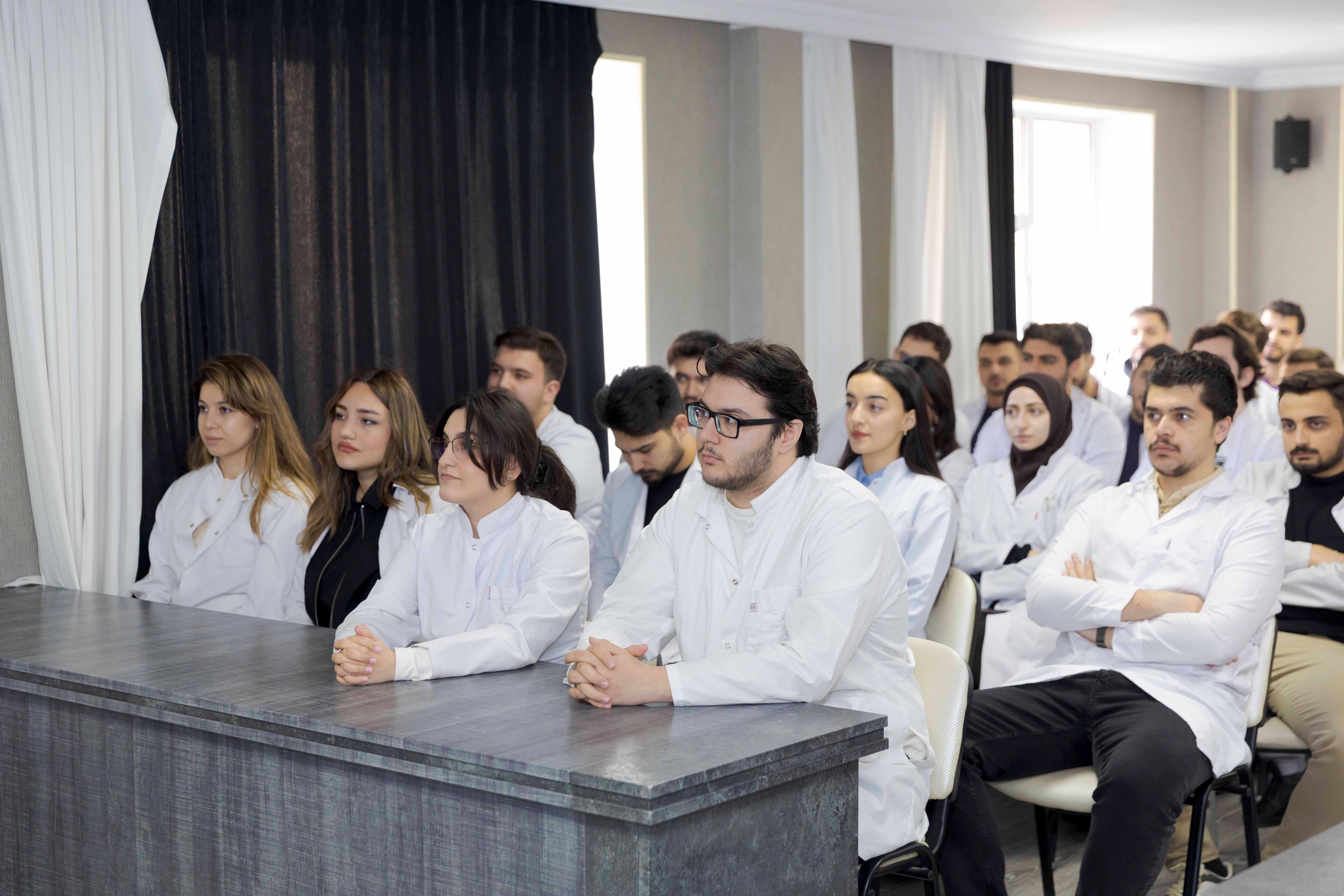 Tədbirdə çıxış edən fakültə dekanı, dosent Elmira Əliyeva belə görüşlərin tələbələr üçün böyük əhəmiyyət daşıdığını vurğulayıb. O, stomatologiya sahəsində beynəlxalq təcrübə mübadiləsinin vacibliyindən danışaraq xarici praktikaların gənc mütəxəssislərin peşəkar inkişafına mühüm töhfə verdiyini qeyd edib.