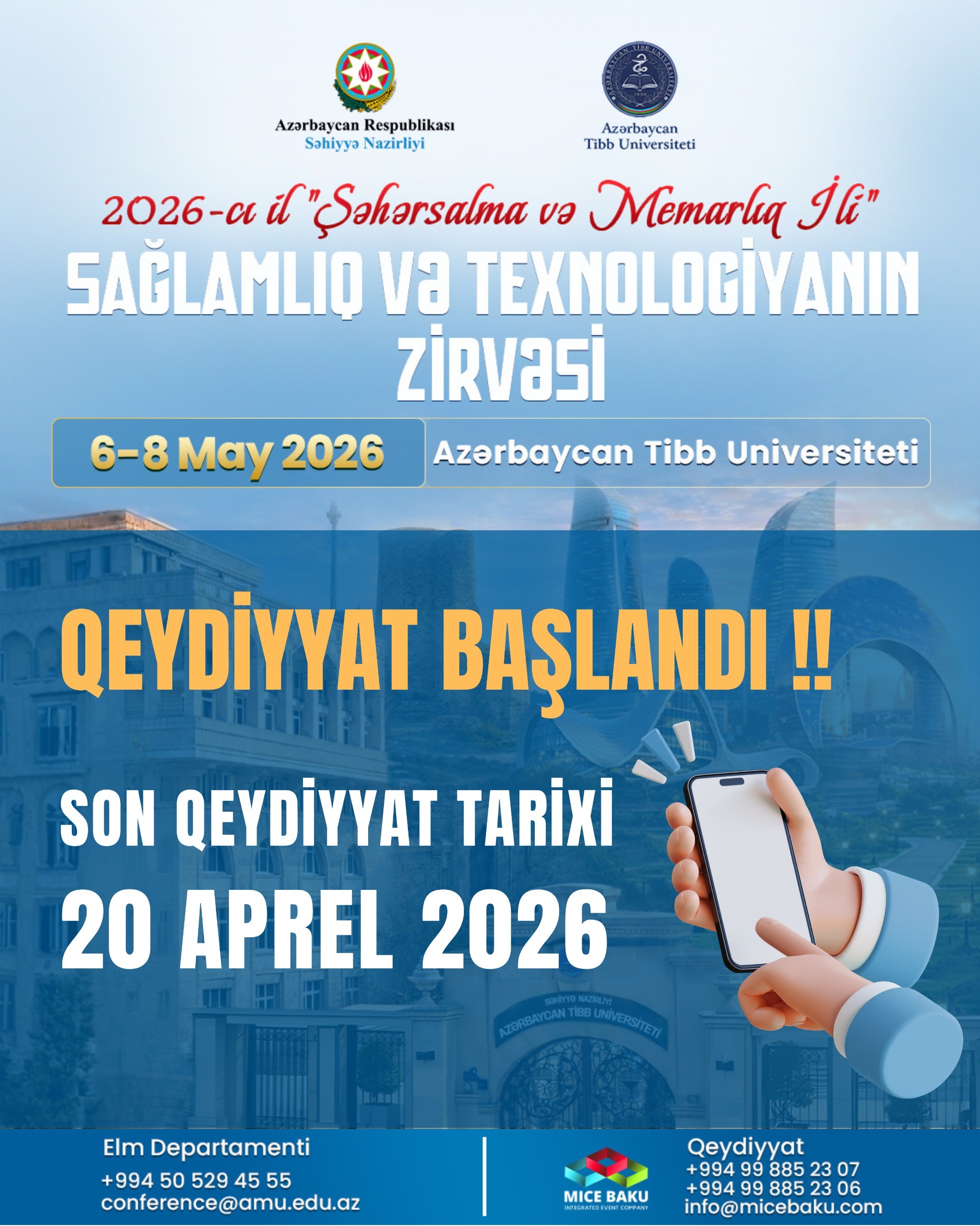 2026-cı ilin “Şəhərsalma və Memarlıq İli” çərçivəsində Azərbaycan Tibb Universiteti tərəfindən təşkil olunan “Sağlamlıq və Texnologiyanın Zirvəsi” adlı beynəlxalq elmi-praktik konfransa qeydiyyat elan olunur.